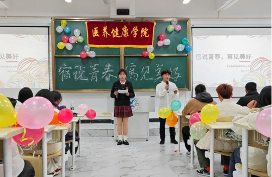 寝室作为大学生的重要居住场所,是学院精神文明建设和思政教育的重要阵地,是反映学生精神境界和校风校貌的重要窗口。为促进寝室内部的团结、增强寝室的凝聚力,提升同学们的生活质量,医养健康学院于2023年11月14日在三号教学楼举办“宿说青春·遇见美好”寝室文化大赛。许汝双、罗兆丹、马永寿、姚志妹等老师出席,130余名学生代表观看比赛。