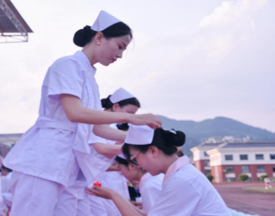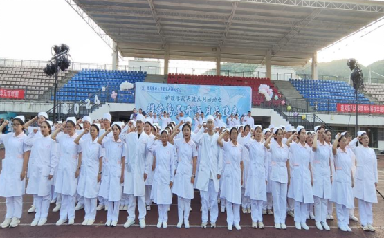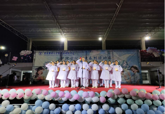 伴随着青春的旋律,戴上圣洁的燕尾帽,新一代的“白衣天使”们承载着前辈们象征着希望的蜡烛继续成为新的光明,在何霞老师的带领下,手捧烛光,举起右手庄严宣誓,奉行人道主义精神,践行白衣天使的使命和责任。