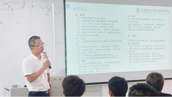 讲座开始,张院长抛给同学们一个问题:为什么要上大学?然后告诫同学们要在大学期间从“立大志、养品行、学本领、强体魄”四个方面来提升自己,丰富自己的大学生涯。在思想引领方面,强调了大学生应具备的理想信念和价值观。他鼓励新生们要树立远大的人生目标,积极向党组织靠拢,在大学期间努力提升自己的思想政治素养。