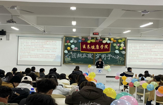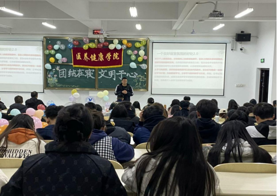 为提升学生的寝室文化素养,加强团结协作精神,引导学生注重寝室卫生、安全和文化建设,2024年11月29日,医养健康学院在3号教学楼24阶梯教室举办“团结在寝·文明于心”寝室文化建设大赛。