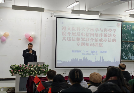 为有力防范各类网络电信诈骗案件的滋生,切实提升学生对网络电信诈骗的甄别与抵御能力,维护同学们合法权益,2024年12月7日15时,临床学院团总支在二号教学楼第二阶梯教室开展“防范电信诈骗,打击网络犯罪”主题活动。本次活动特邀遵义市公安局新蒲分局反诈办陈桂松警官担任主讲老师,临床学院各年级学生代表共同参加。