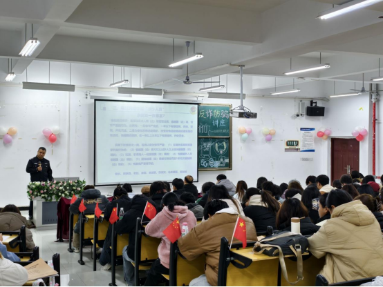 活动以反诈宣传短视频开场,通过生动的视频案例,直观有效地向同学们普及了反诈知识,展现了网络诈骗的多样性和复杂性。随后,陈桂松警官从法律角度解读了《中华人民共和国反电信网络诈骗法》等相关法规,详细阐述了电信网络诈骗的各种形式、犯罪分子的作案手法和技术演变,并针对不同的目标群体进行了深入分析。他还传授了预防技巧和应对策略,显著提升了同学们的防范意识和能力。