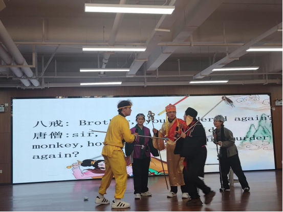 英语专任教师罗曼芸对舞台剧的英语表达进行了专业点评,她指出英语的学习离不开运用,只有将英语学习融入生活,融入专业学习,融入对文艺作品的赏析过程中,英语的表达才能够更加鲜活。同时,还给同学们分享了“影子跟读”的口语学习策略。