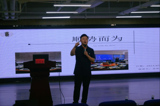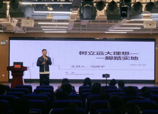 讲座邀请到了三位校外的专家和企业家担任主讲嘉宾。贵州大学的冯祎宇老师,博士、副教授、硕士生导师,长期从事经济学理论与政策研究,对市场环境与就业趋势有着深刻洞察。他以“树立远大理想——脚踏实地”为切入点,深入剖析了当前的就业形势,解读行业需求,助力同学们在复杂环境中找准职业定位。他强调,创业之路充满艰辛与挑战,创业者不仅需要具备敏锐的市场洞察力,还需拥有坚韧不拔的毅力和勇于创新的精神。
