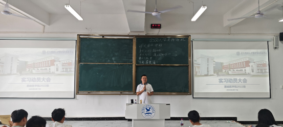 为推进2022级学生实习工作顺利开展,明确实习目标与要求,2025年6月17日,基础医学院于教学楼阶梯教室组织召开实习动员大会,2022级全体学生参会。会议由吴芮老师主持。