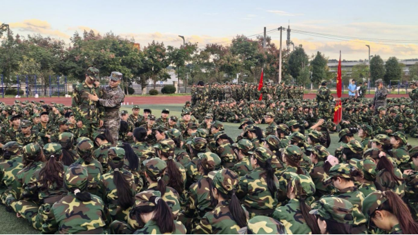 金秋送爽,迷彩飞扬。为帮助2025级新生系好大学生涯“第一粒扣子”,锤炼意志品质、增强国防观念,2025年10月9日,学校2025级新生军训开训仪式在体育场举行。学校结合新生院系、专业及人数情况,科学组建参训队伍。基础医学院共成立5个军训连队,每连95人,346名新生全员纳入管理体系。每个连队均配备1名专职辅导员,负责新生日常管理与思想引导。同时安排7名学生干部协助开展考勤记录、通知传达等工作,还明确了“安全联络人”,确保训练期间突发情况能第一时间响应处置。