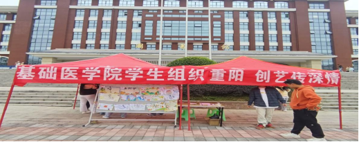 为深入传承与弘扬中华优秀传统文化,践行“尊老、敬老、爱老”传统美德,丰富学院师生的精神文化生活,营造和谐温馨、积极向上的校园文化氛围,2025年10月29日上午,基础医学院在国旗广场举办“重阳・创艺传承情”主题作品展出及现场投票活动。活动由学院团总支主办,吸引广大师生热情关注与积极参与。