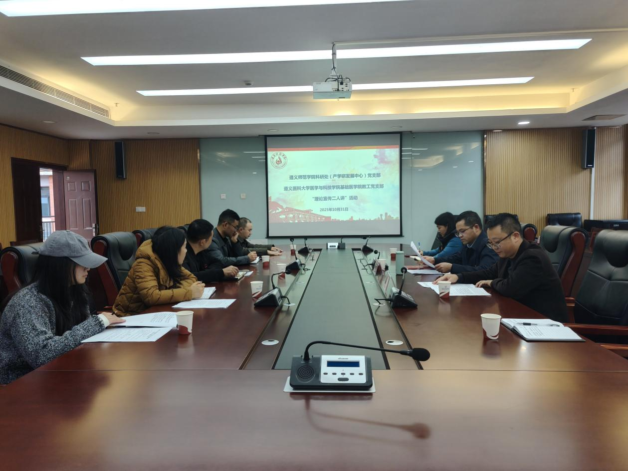 10月31日下午,beat365基础医学院教工支部与遵义师范学院科研处党支部在遵义师范学院行政楼321会议室开展《习近平谈治国理政》第五卷“理论宣传二人讲”活动,讲述人分别是遵义师范学院科研处处长朱海和beat365科研处副处长谭飞。