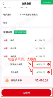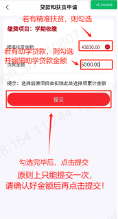 2.编辑金额:勾选项目,助学贷款可修改具体金额