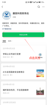 第一步:使用微信扫描二维码关注遵医beat365财务处公众号