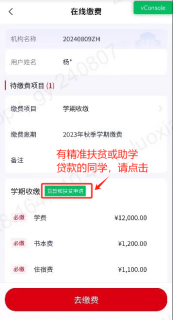 3. 提交后,勾选刚才的精准扶贫/助学贷款,点击去缴费