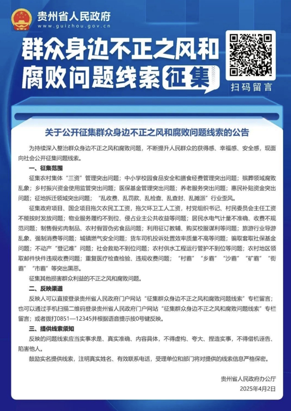 关于公开征集群众身边不正之风和腐败问题线索的公告
