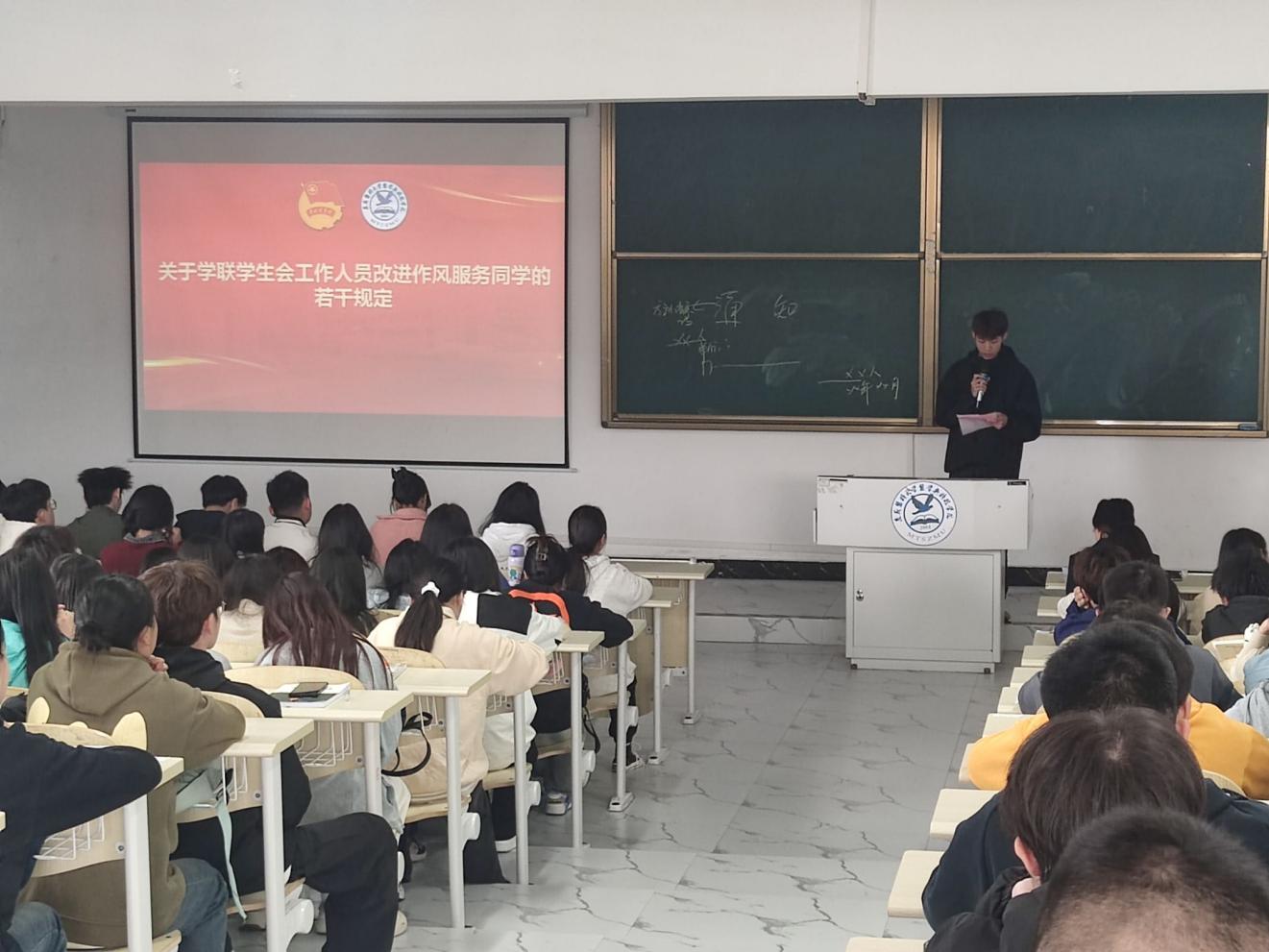 本次专题培训分为理论学习、业务培训、工作部署和交流分享四个方面进行。院团委专职团干、校学生会秘书长张婷婷结合学院学生会工作实际,从公文写作、活动策划、新闻宣传等方面开展学生干部业务能力提升培训,并对学生会围绕“我为同学做事”及学生会本学期重点工作任务进行安排。学生会主席团执行主席王功远同学领学《关于学联学生会工作人员改进作风服务同学的若干规定》文件内容,学生会主席团执行主席唐冰洁同学领学《论党的青年工作》,并分享阅读《习近平的七年知青岁月》的心得体会,号召全体学生干部要充分发挥学生会的桥梁纽带作用,恪守学生本分,牢记服务宗旨,永葆理想情怀,勤勉务实做事,营造平等氛围,摒弃庸俗习气,主动贴近同学、服务同学、凝聚同学和引领同学,带领全院同学一起在青春的赛道上奋力奔跑,争取跑出当代青年的最好成绩。