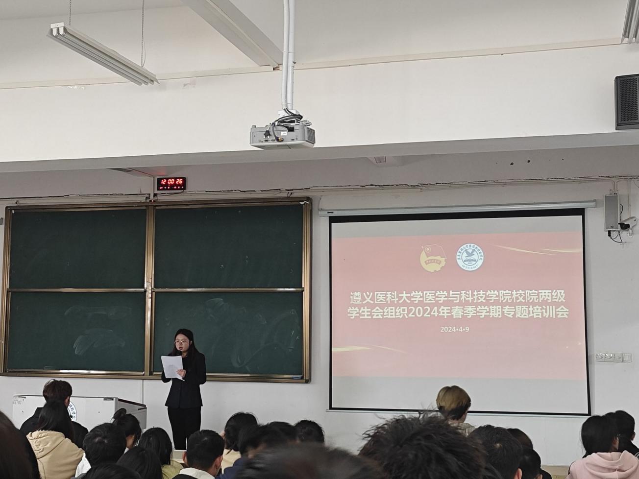 为巩固学生会组织改革成果,推动校院两级学生会之间的联系,提升学生干部综合能力,4月9日,学院团委在第Ⅲ教学楼第十五阶梯教室开展2024年春季学期校院两级学生会组织专题培训会。院团委专职团干、校学生会秘书长张婷婷,校院两级200余名学生会干部参加培训。会议由校学生会主席团执行主席唐冰洁同学主持。