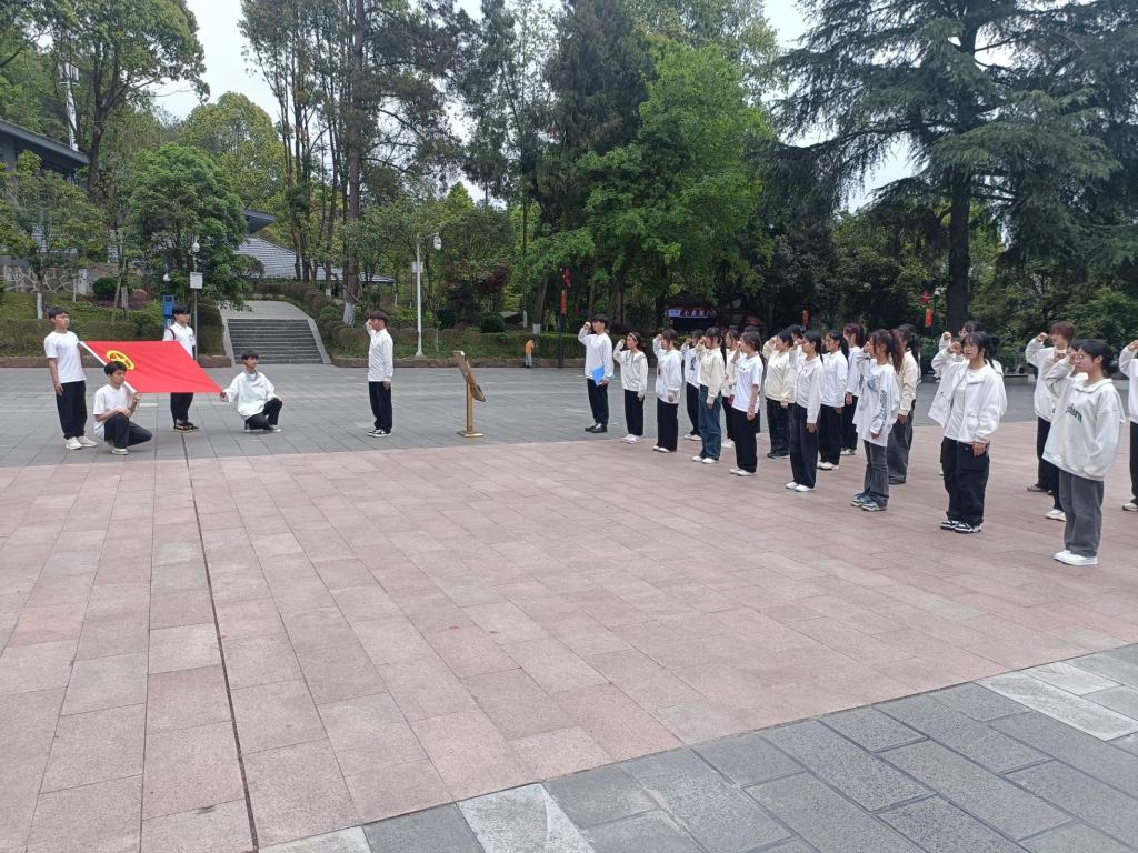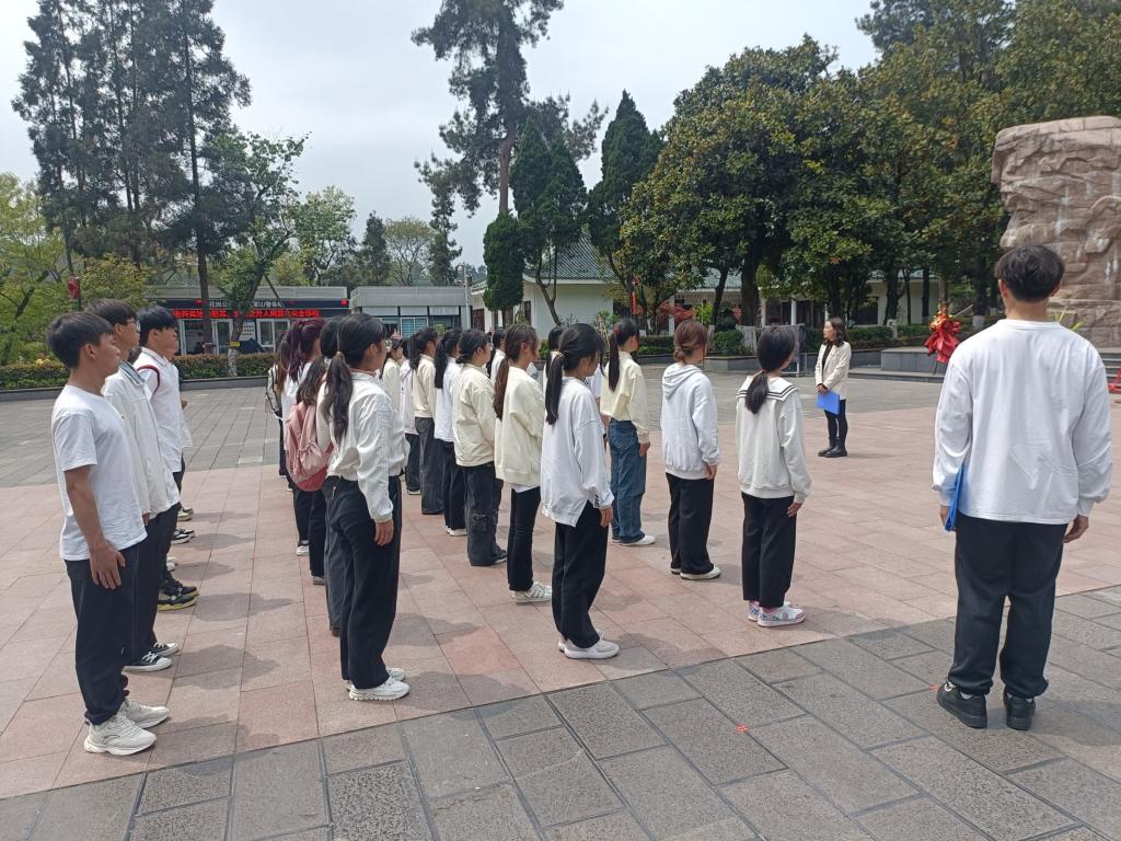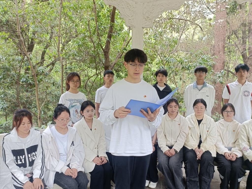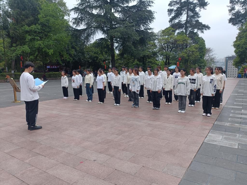 活动伊始,全体人员整齐列队,肃立在烈士纪念碑前,共同缅怀为国家、为民族英勇献身的烈士们,在庄重的氛围中,学生代表向革命烈士敬献菊花,告慰忠魂,大家默哀致敬,表达对革命先烈的深切怀念和崇高敬意。默哀结束后,学生代表们瞻仰了烈士纪念碑,在烈士纪念碑前,学员悼念为今天的幸福生活而英勇捐躯的英雄,瞻仰革命烈士的信仰和不朽,铭记源远流长的革命精神,青马工程学员钟佳源同学带领同学们在纪念碑前重温入团誓词,大家专注的目光凝聚的是信念的坚定,高举的右拳紧握的是对团的忠诚,铿锵的誓言喊出的是为共产主义事业而奋斗的磅礴力量,新媒体中心学生代表罗瑞超和“青马工程”学员代表杨远琴两名同学分别发言,各学生组织代表分组朗诵《沁园春·雪》等革命诗歌,校团委专职团干、学生会秘书长张婷婷老师在发言中希望大家能够不忘初心使命,向革命先烈学习不怕吃苦、不怕牺牲的精神,要自觉争当红色基因的传承者与实践者,在以中国式现代化全面推进强国建设、民族复兴伟业中挺膺担当,为实现中华民族伟大复兴的中国梦贡献青春力量。