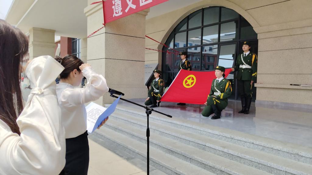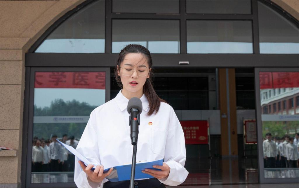 仪式在雄壮的国歌声中拉开帷幕,学生工作部(处)部(处)长杨莹宣读吸收2024年新团员的决定;与会领导、教师代表、老团员代表逐一为2024年新团员佩戴团徽徽章和颁发团员证;院团委专职团干、教工团总支副书记张婷婷老师带领新团员进行入团宣誓,老团员重温入团誓词;新团员赵冬绪、陈祖琴代表新团员发言,号召全体新团员要坚定理想信念,做有理想、敢担当、能吃苦、肯奋斗的新时代好青年;“黔青英才”第九期大学生骨干培训班学员、校优秀共青团干部、医养健康学院养老服务与管理专业2021级王凯茜,临床学院医学检验技术专业2021级唐星豪代表老团员、学生党员发言,激励全体团员要积极承担起新时代赋予青年的历史责任,当好共青团精神的传承者,用实际行动诠释、践行入团誓词,切实履行团员义务和责任,时刻以团员标准严格要求自己,努力成为一名优秀的共青团员。