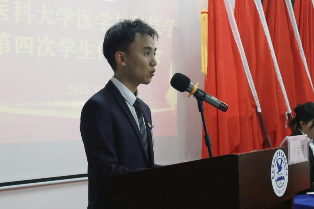学院副院长王中磊在开幕式讲话中指出,学生代表大会是学生政治生活中的一件大事,也是学院的一件大事,是落实民主治校、依法治校的重要内容。一年来,学生会坚定中国特色社会主义群团发展道路,积极探索紧扣时代特征、契合学生特点的工作新思路,在引领青年大学生坚定不移听党话、跟党走,服从学院人才培养大局、扎实做好学生工作等方面开展了大量卓有成效的工作,在促进学院改革发展、服务学生成长中发挥了重要作用。他提出三点希望:一要高举旗帜跟党走,坚定正确的政治方向,加强自身建设,围绕学院中心工作,发挥桥梁纽带作用,团结带领广大青年学生以赤诚赴使命,以拼搏显担当,奋力书写新时代中国青年运动和青年工作的壮丽篇章;二要奋进新征程,建功新时代。紧跟时代步伐,胸怀“国之大者”,与党同心、跟党奋斗,争当中国式现代化建设的生力军用实际行动践行对党许下的铮铮誓言;三要做青年友,不做青年官,无私无我,竭尽真诚,实现自我价值,不负火热青春。