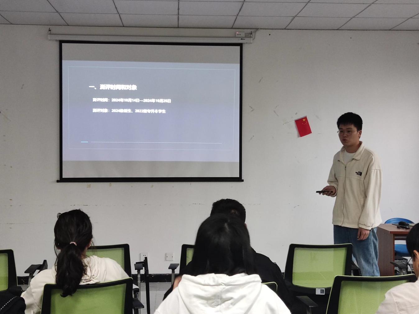 为进一步强化我院辅导员心理健康专项技能,提升心理健康教育工作的能力,推动我院2024级本科及专升本学生的心理测评工作顺利开展,10月11日上午,学生工作部(处)大学生心理健康辅导中心在团体辅导活动室开展了2024级新生及专升本学生辅导员培训会,培训主题为“如何开展秋季学期心理测评工作及心理系统的功能介绍”。2024级新生辅导员及2022级专升本学生辅导员参加培训。