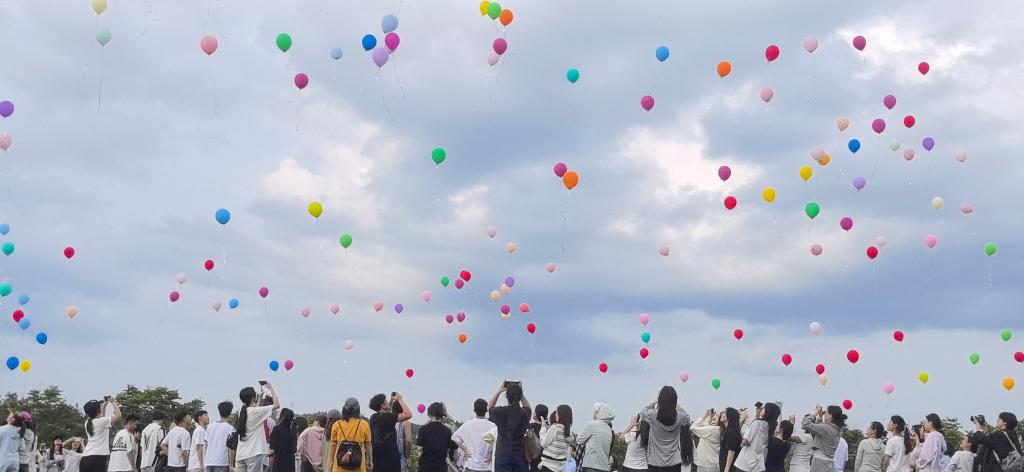 在“展望未来,放飞心愿”活动环节,大学生心理健康辅导中心熊旭兵老师结合“我爱我”主题,引导学生学会善待自我、接纳自我,进而传递对他人与世界的爱。随后,同学们将心愿、祝福与期许书写在卡片上,伴随气球放飞。