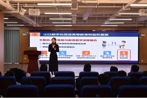 张克雯教授围绕“智慧课程升级建设与课堂教学创新”这一主题,结合国家大政方针与社会科技发展的背景,详细阐述了智慧课程建设的必要性,深入讲解在人工智能高速发展的当下,AI技术为课程教学带来的变革,并通过理论与实践相结合的方式,展示了智慧课程所取得的具体成果,使参与讲座的每位教师对智慧课程有了更为深刻的理解。