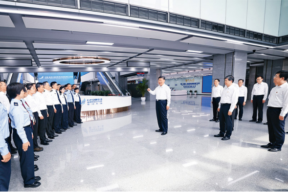 2024年10月15日至16日,中共中央总书记、国家主席、中央军委主席习近平在福建考察。这是16日上午,习近平在中国(福建)自由贸易试验区厦门片区考察时,同综合服务大厅现场工作人员亲切交流。 新华社记者 鞠鹏/摄