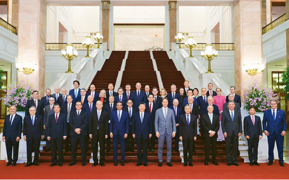 2025年3月28日上午,国家主席习近平在北京人民大会堂会见国际工商界代表。 新华社记者 丁林/摄