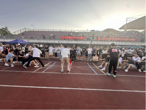 为促进学生德、智、体、美、劳全面发展,丰富校园文化生活,增强班级凝聚力,2024年5月19日至22日,临床学院团总支于田径场举办“凝‘绳’聚力展风采,团结共创新篇章”拔河比赛。