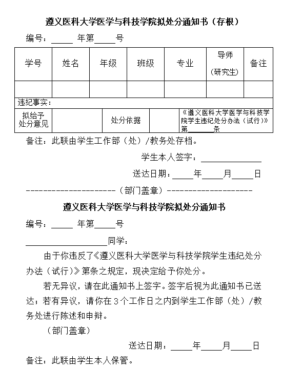 由学生工作部(处)、教务处核实学生基本信息、违规违纪事实及证据,牵头审议核定学生处分初步建议意见,向学生书面下达拟处分通知书,告知学生作出处分决定的事实、理由及依据,并告知学生享有陈述和申辩的权利;学生在接到拟处分通知书后3个工作日之内到学生工作部(处)、教务处陈述和申辩;告知过程需由2名以上工作人员到场,并认真记录告知内容和学生的陈述及申辩,事后及时形成书面报告,归入处分材料。